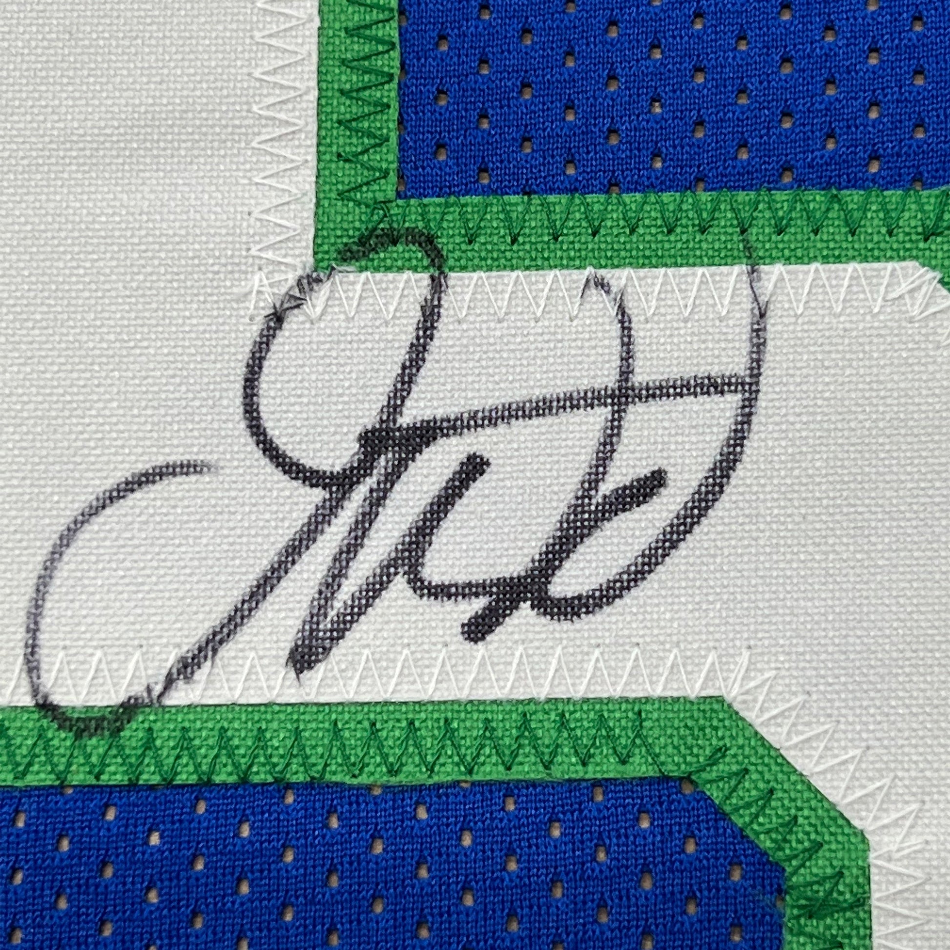 Framed Autographed/Signed Jason Kidd 35x39 Dallas Retro Blue Basketball Jersey Beckett BAS COA