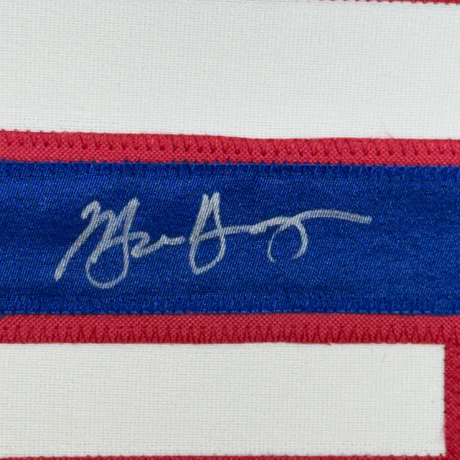 Framed Autographed/Signed Michael Young 35x39 Texas White Baseball Jersey JSA COA