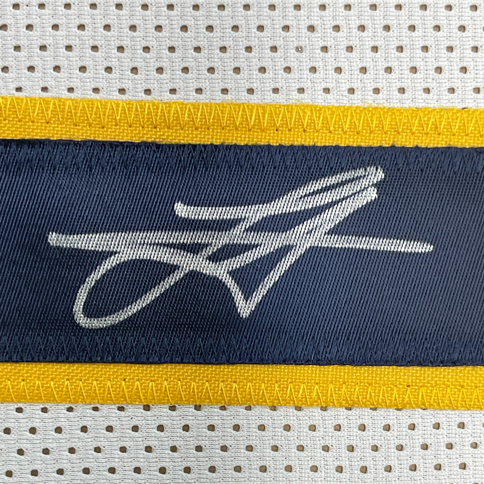 Framed Autographed/Signed Nikola Jokic 35x39 Denver White Basketball Jersey JSA COA