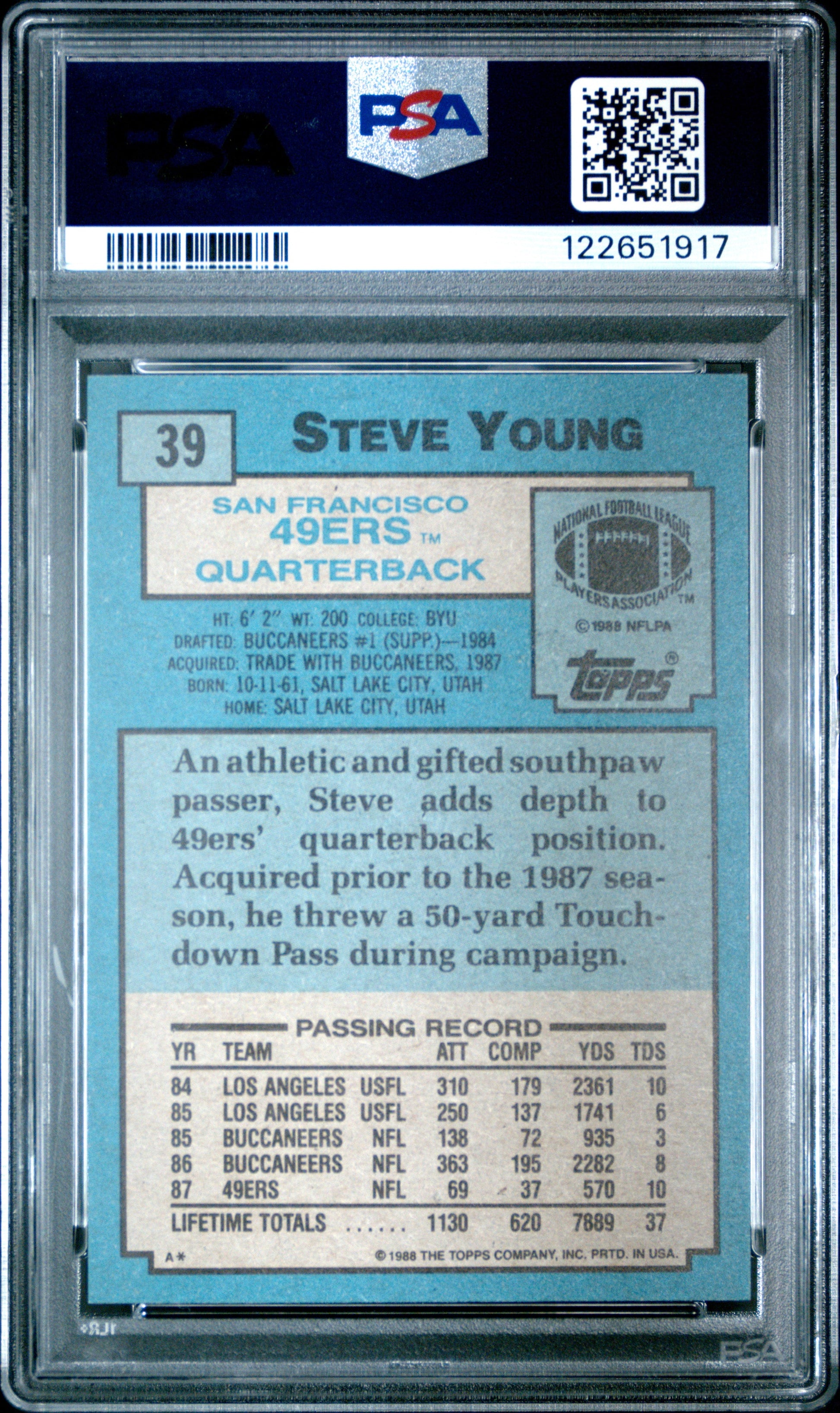 Graded 1988 Topps Steve Young #39 Football Card PSA 9 Mint