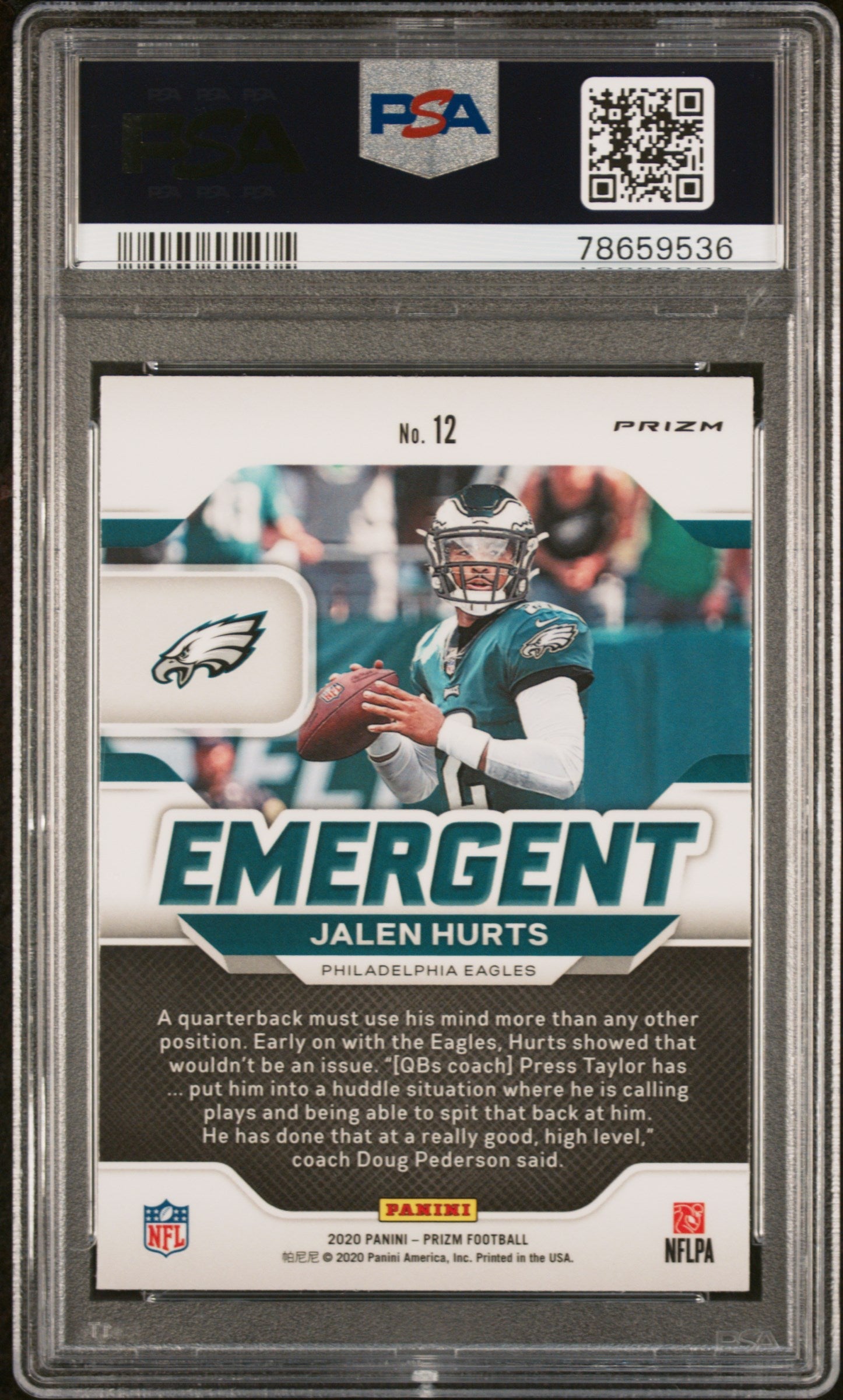 Graded 2020 Panini Prizm Jalen Hurts #12 Emergent Green Prizm Rookie RC Football Card PSA 10 Gem Mint