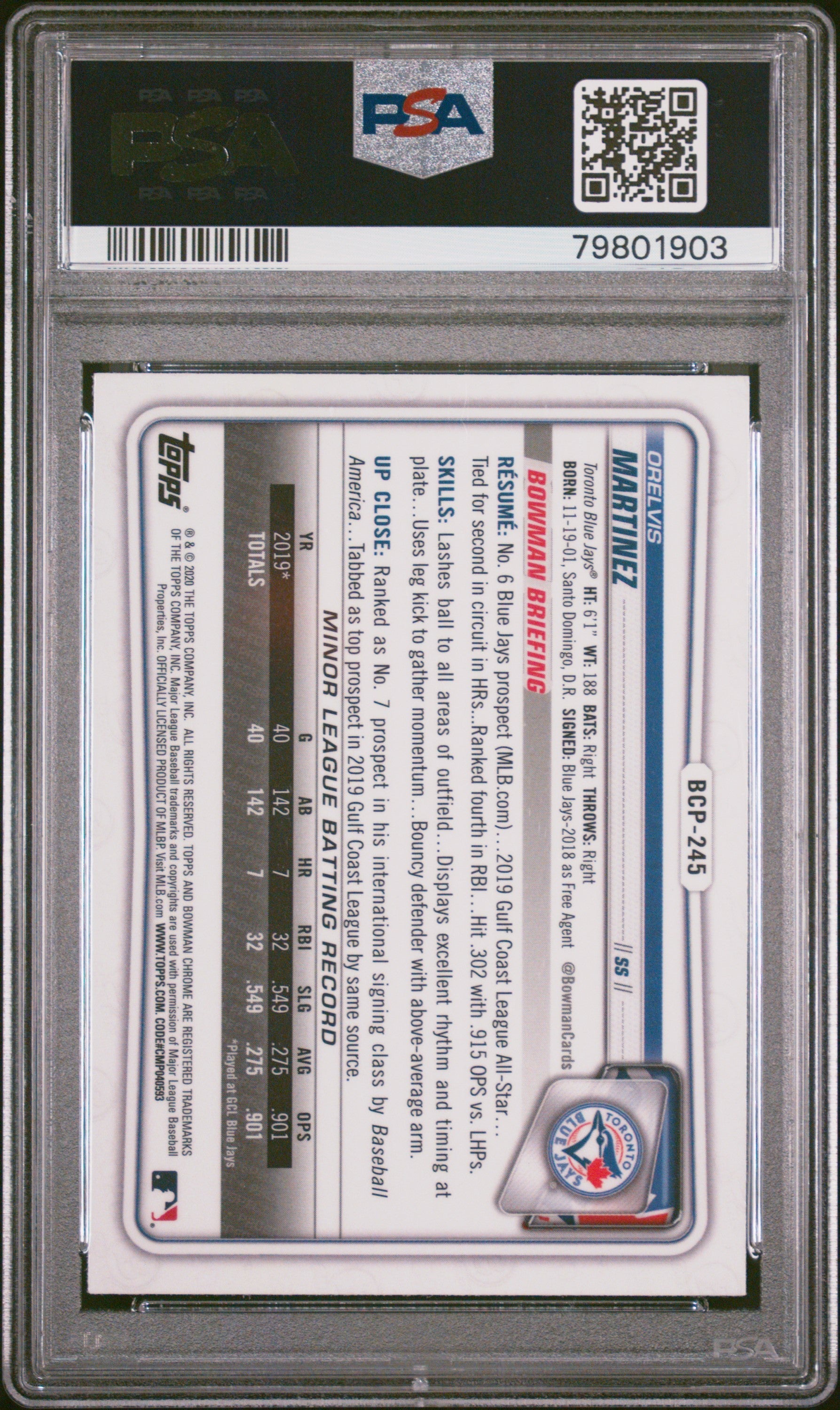 Graded 2020 Topps Bowman Chrome Orelvis Martinez #BCP245 Mega Box Rookie RC Baseball Card PSA 10 Gem Mint
