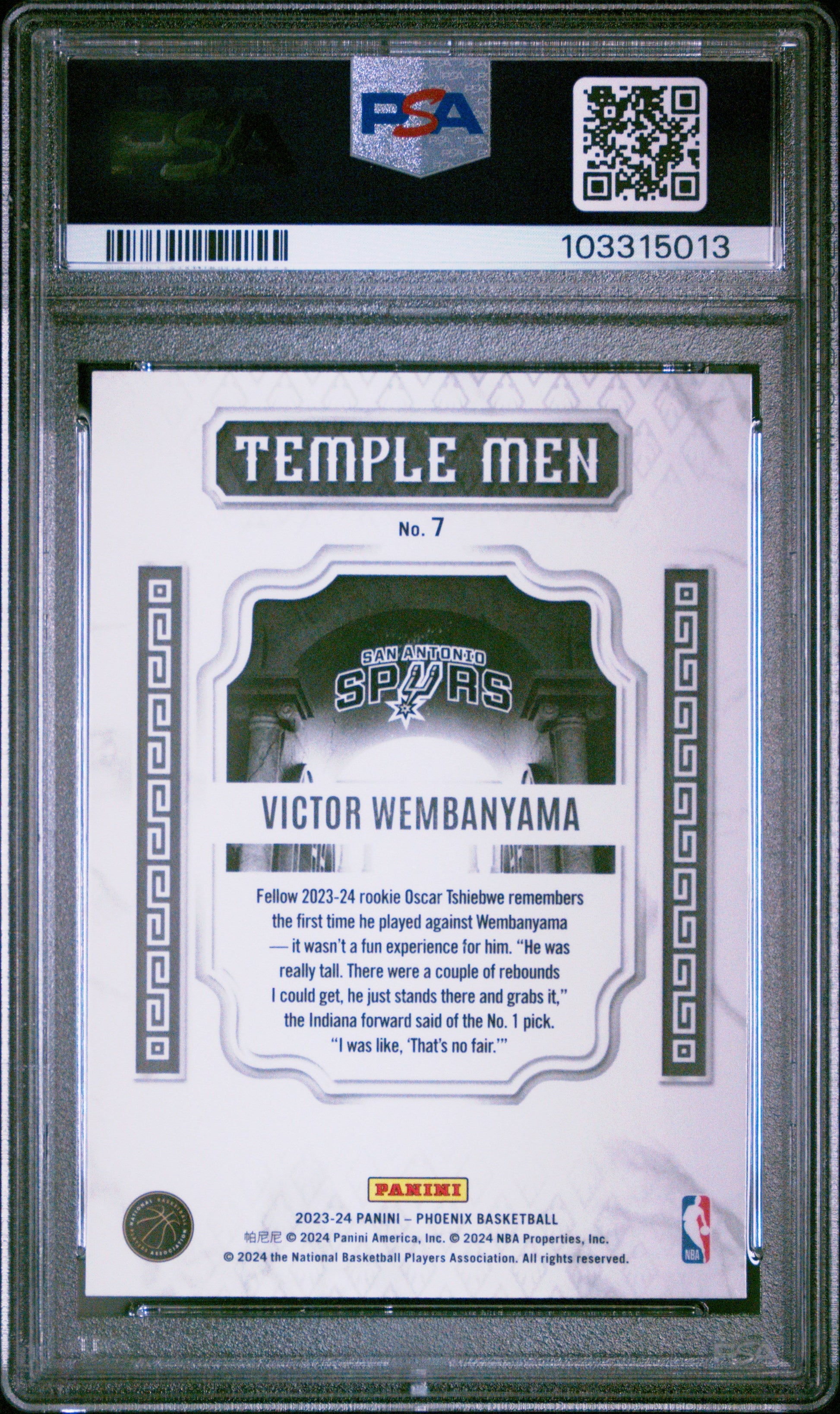 Graded 2023 Panini Phoenix Victor Wembanyama #7 Temple Men Rookie RC Basketball Card PSA 10 Gem Mint