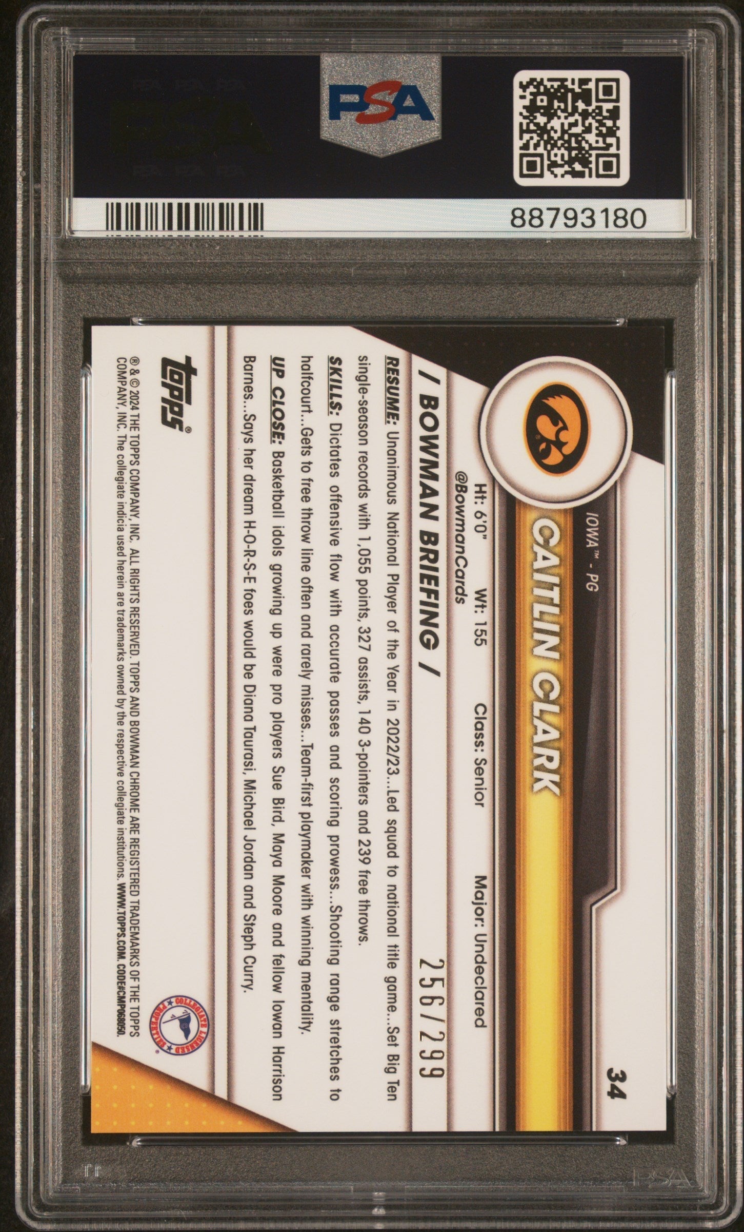 Graded 2023 Topps Bowman U Chrome Caitlin Clark #34 Aqua Wave #/299 Rookie RC Basketball Card PSA 10 Gem Mint