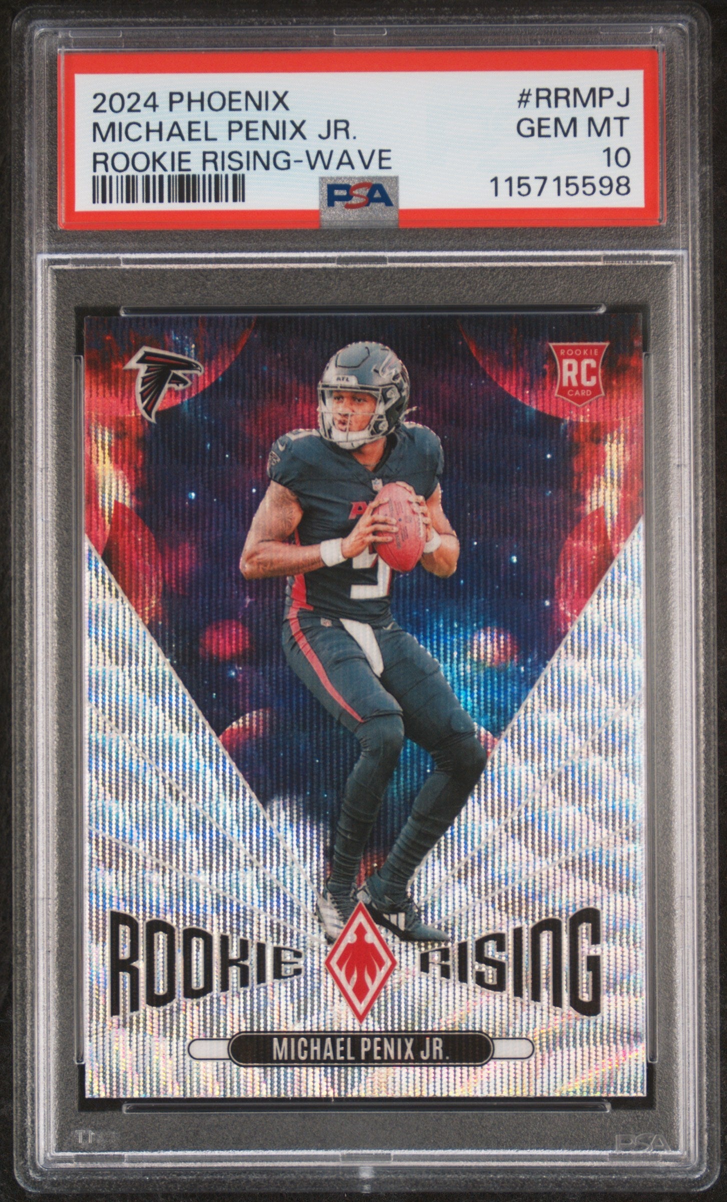 Graded 2024 Panini Phoenix Michael Penix Jr #RRMPJ Rookie Rising Wave Rookie RC Football Card PSA 10 Gem Mint