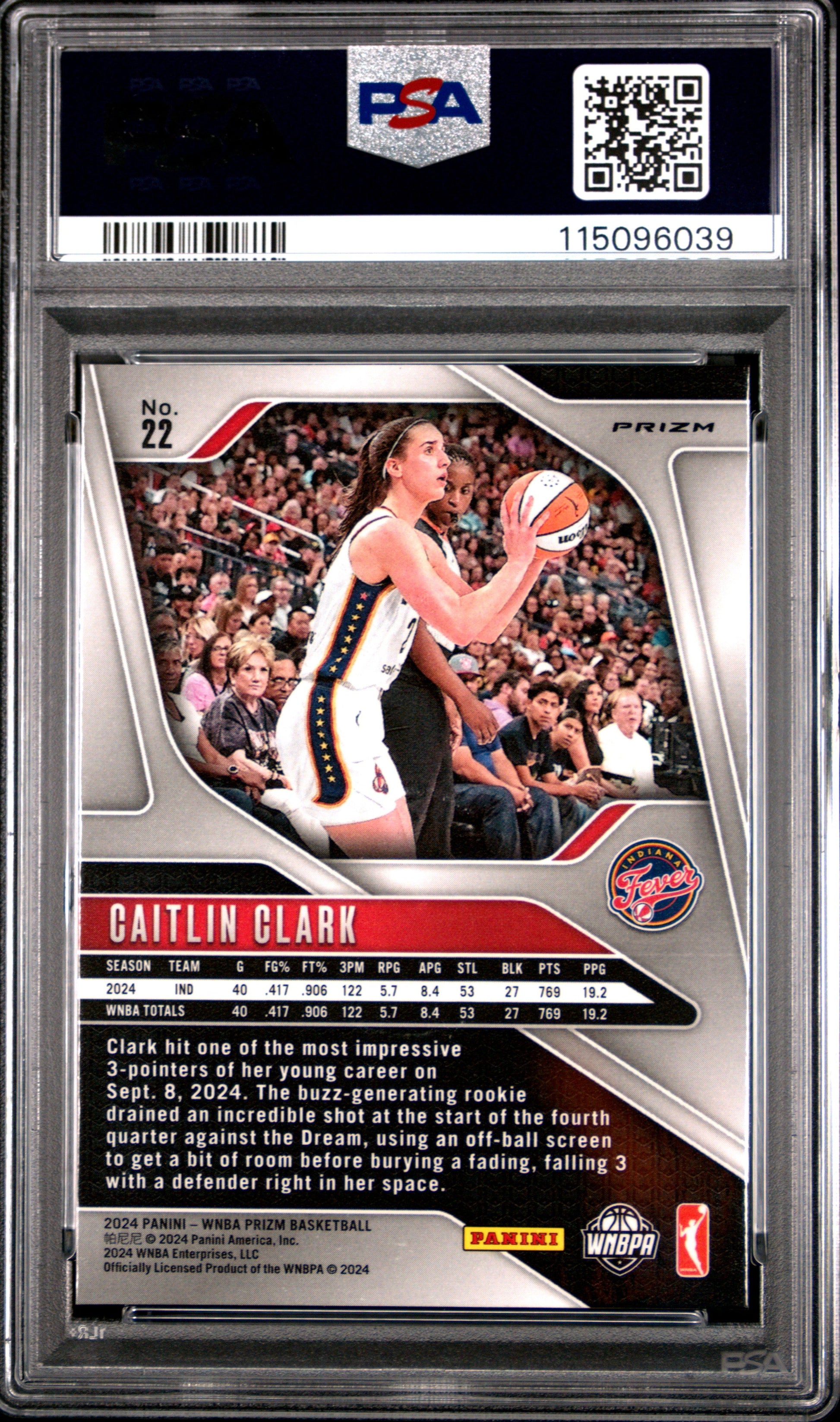 Graded 2024 Panini Prizm Caitlin Clark #22 Ice Rookie RC Basketball Card PSA 9 Mint