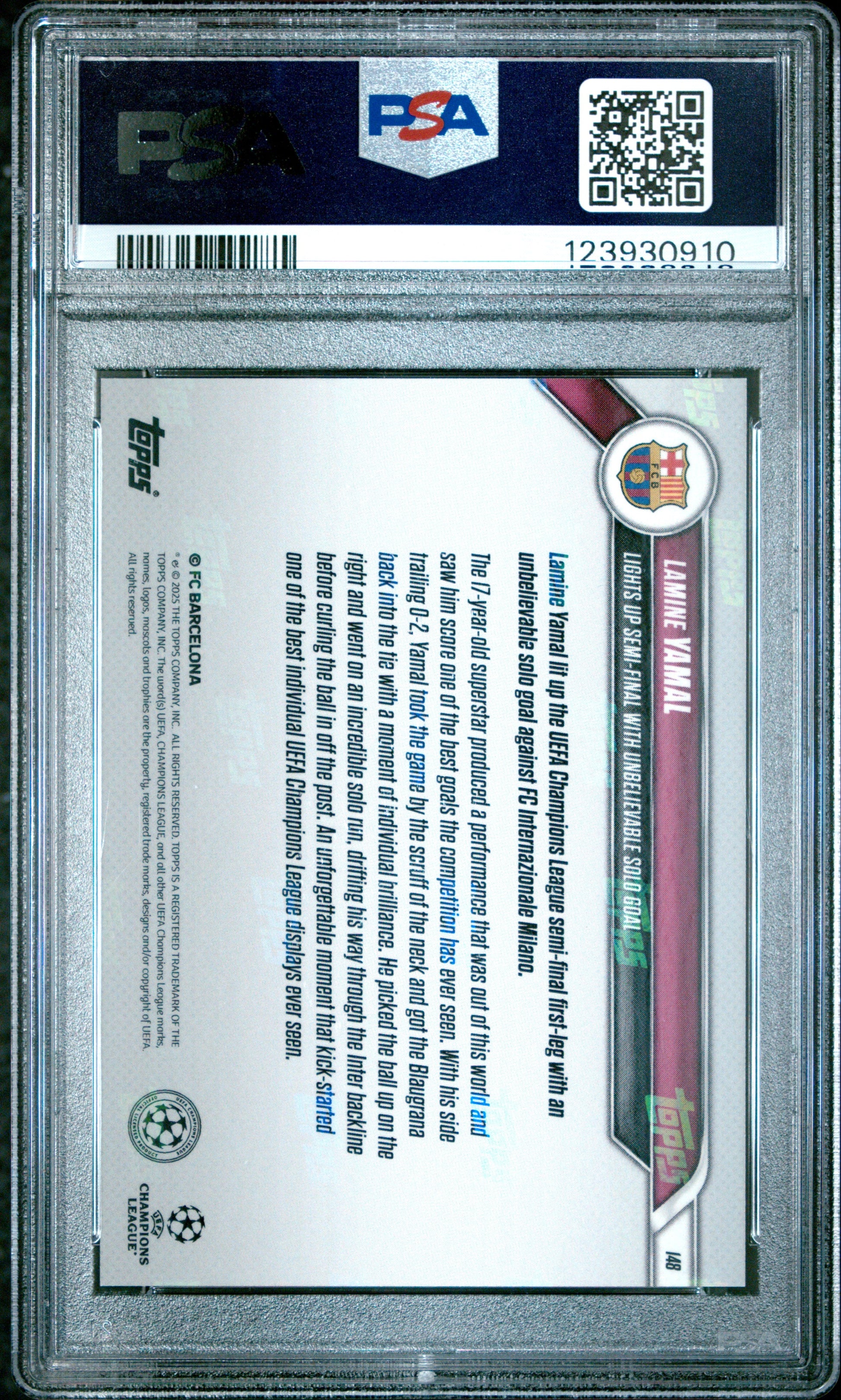 Graded 2024 Topps Now UCL Lamine Yamal #148 Rookie RC Soccer Card PSA 10 Gem Mint