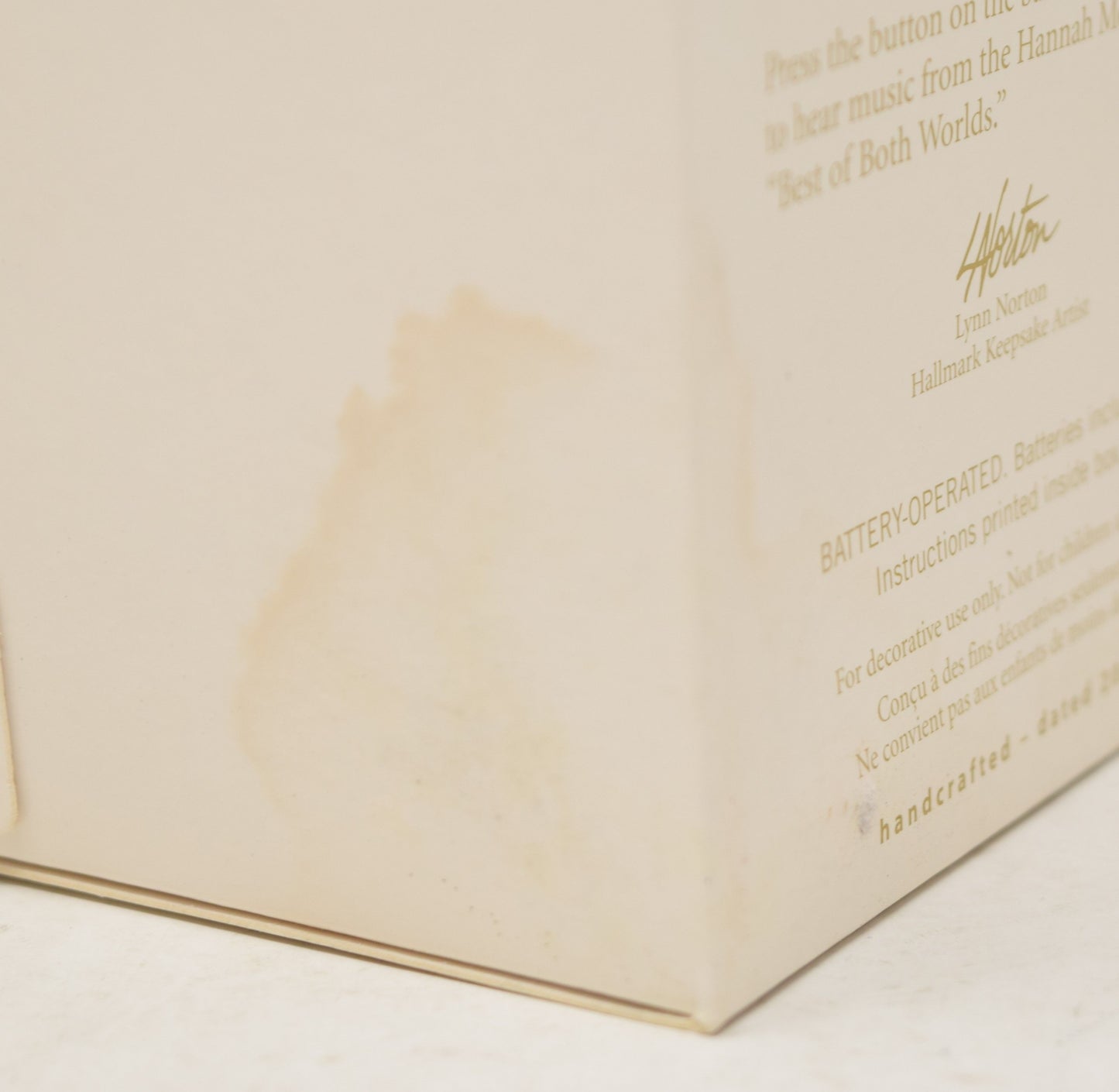 NIB - batteries have been removed from box in order to ship, batteries not included. water staining - ornament is new.