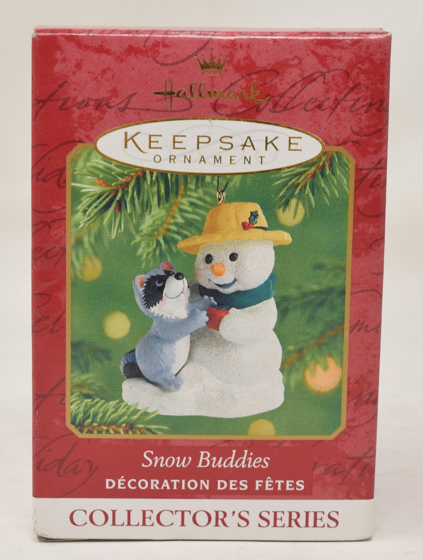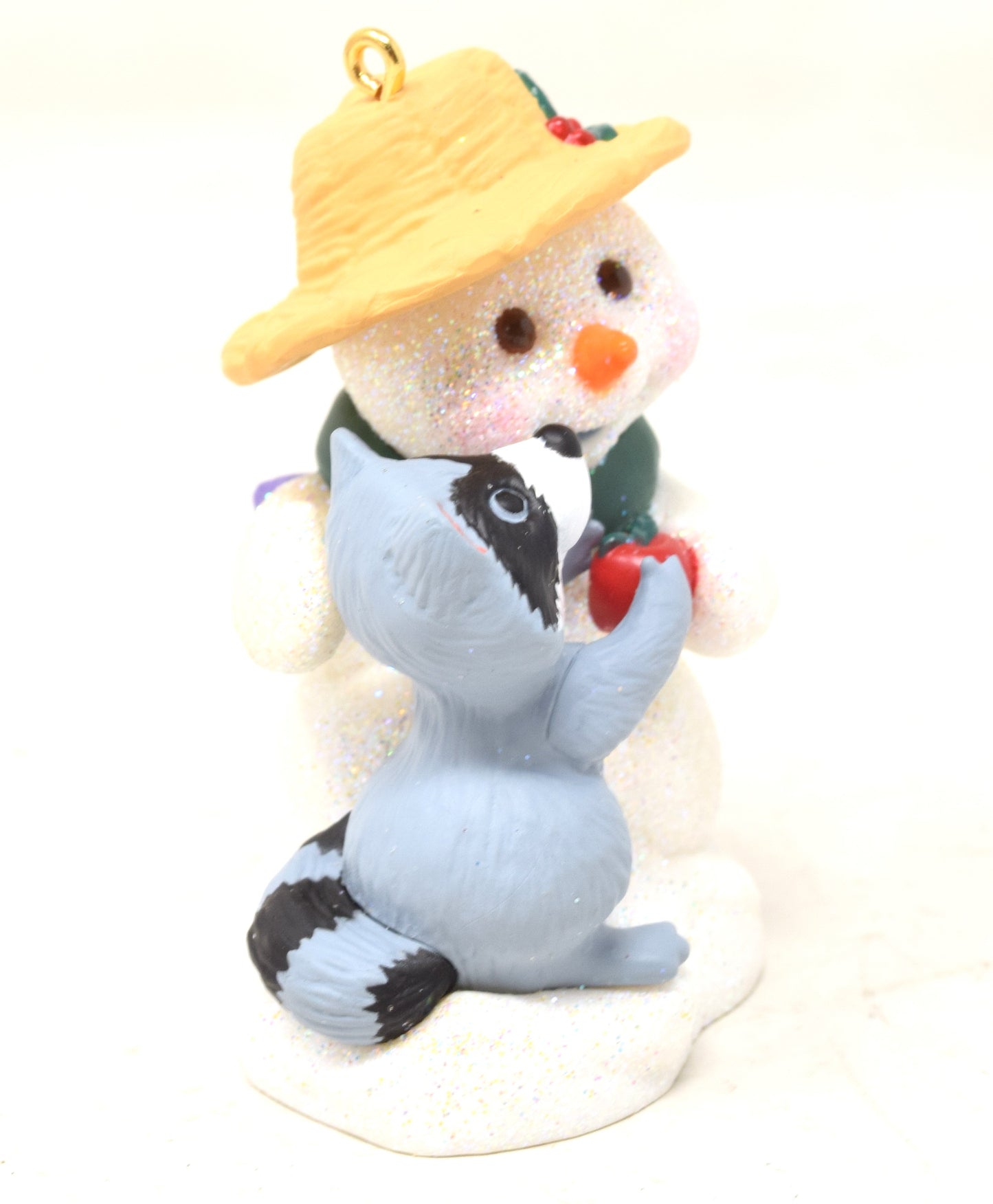 Hallmark Keepsake Ornament Snow Buddies Raccoon Snowman Christmas Tree 2001 NIB