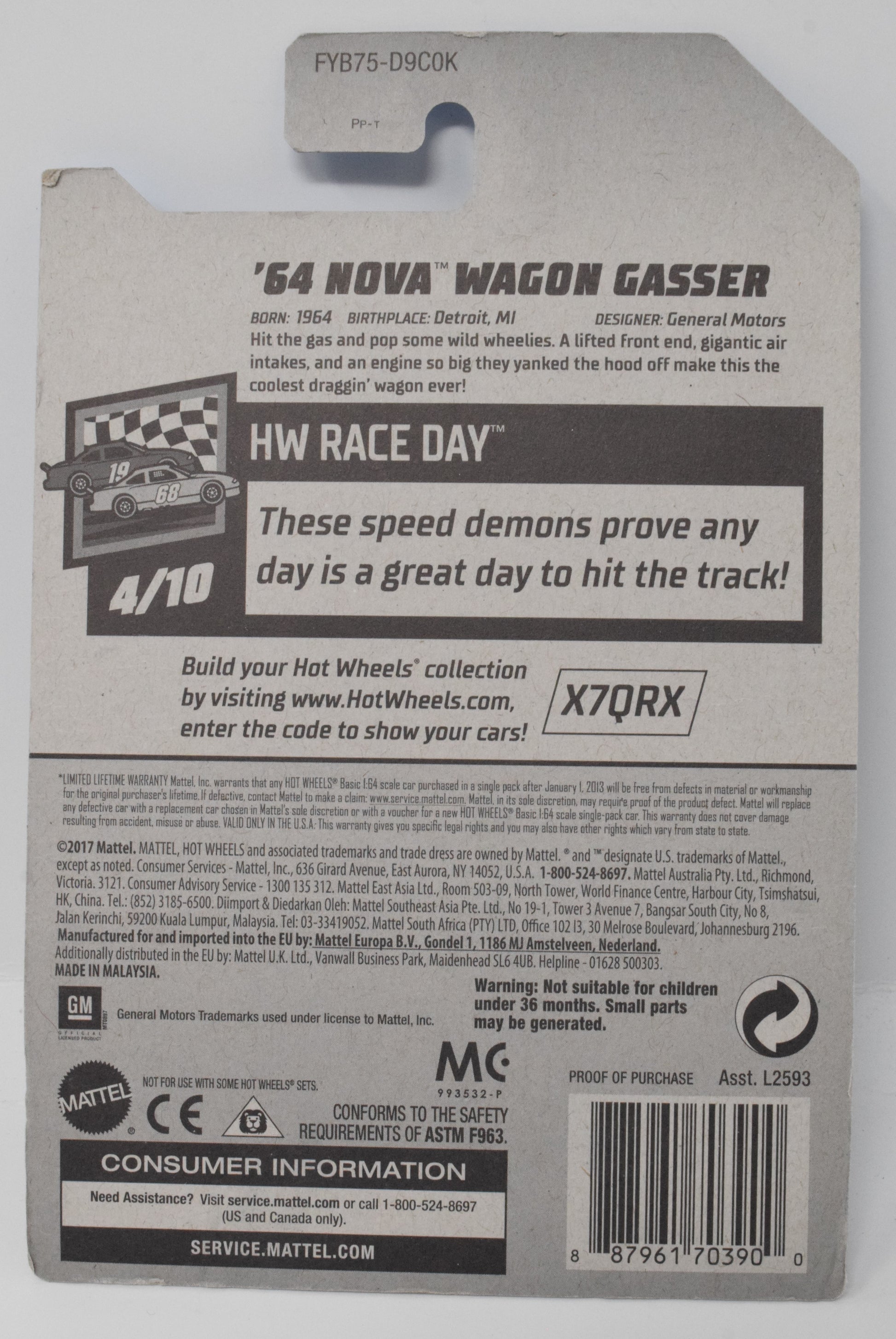 Hot Wheels 64 Nova Wagon Gasser Blue HW Race Day Blue 4/10 198 DieCast Car