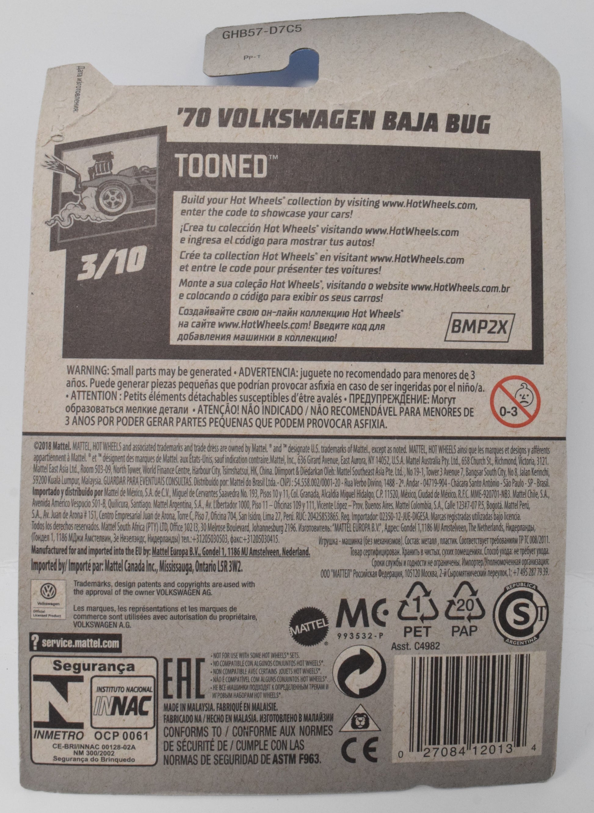 Hot Wheels 70 Volkswagen Baja Bug Tooned White DieCast Car 3/10 126 New