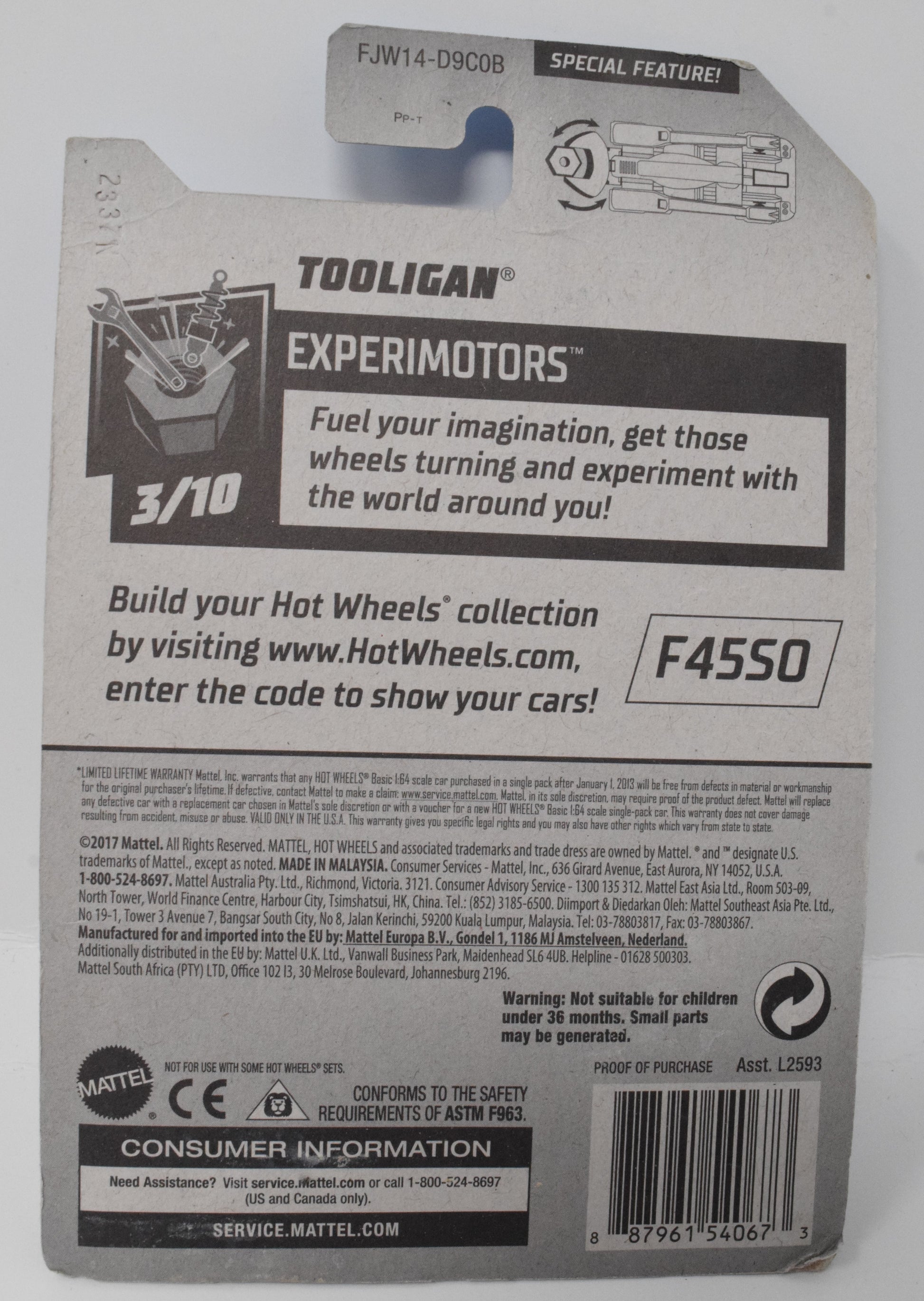 Hot Wheels Tooligan Experimotors Special Feature 3/10 24 DieCast Car New