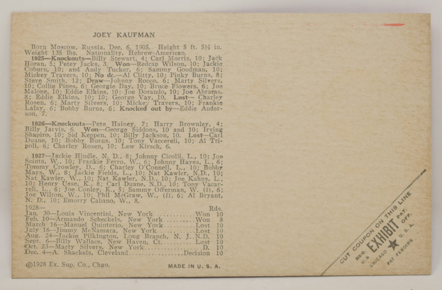 Joey Kaufman Boxing Exhibit Card Postcard Penny Arcade Red Photo 1928 5 x 3