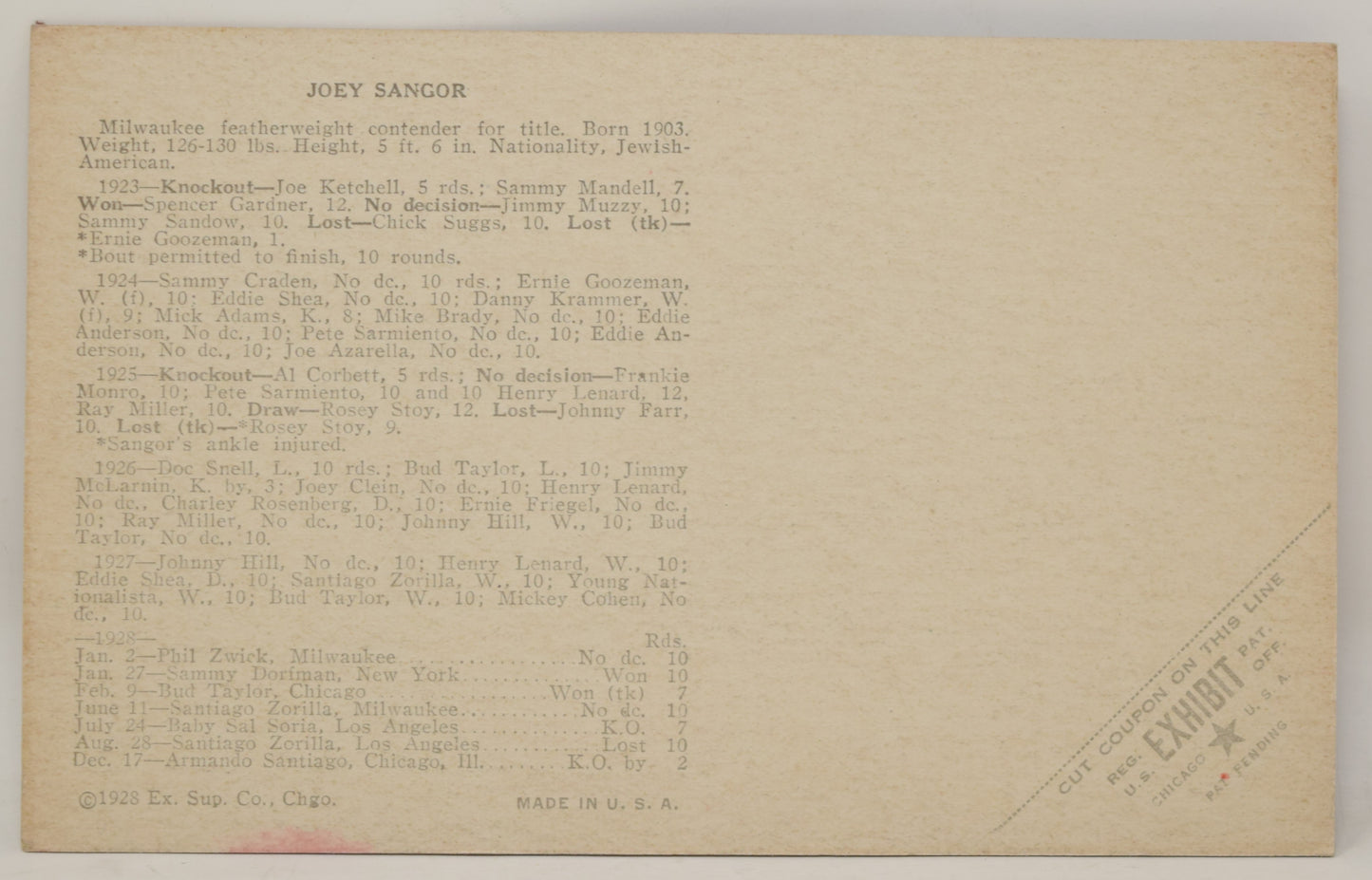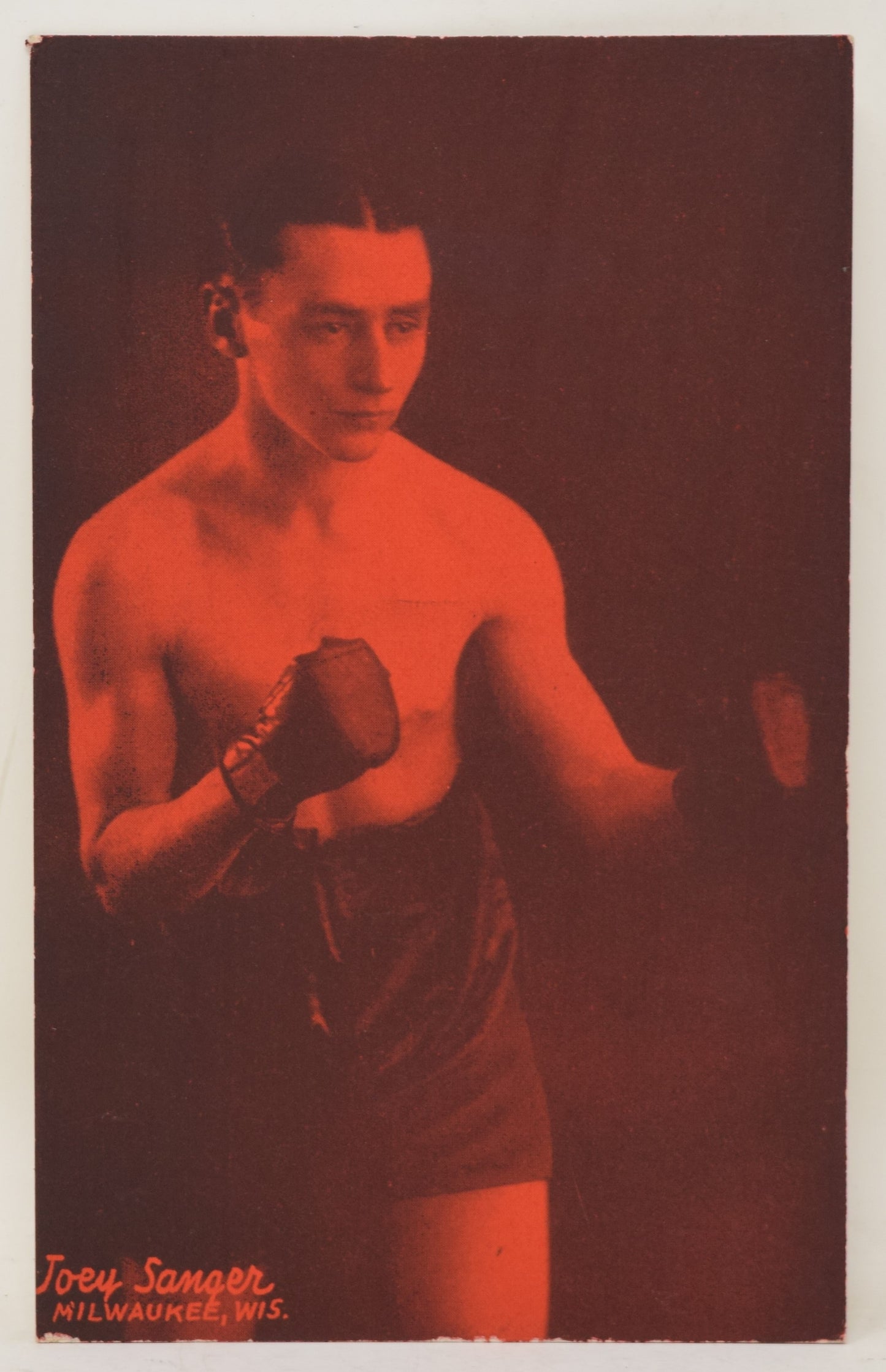 Joey Sanger Boxing Exhibit Card Postcard Penny Arcade Red Photo 1928 5 x 3