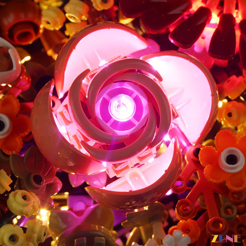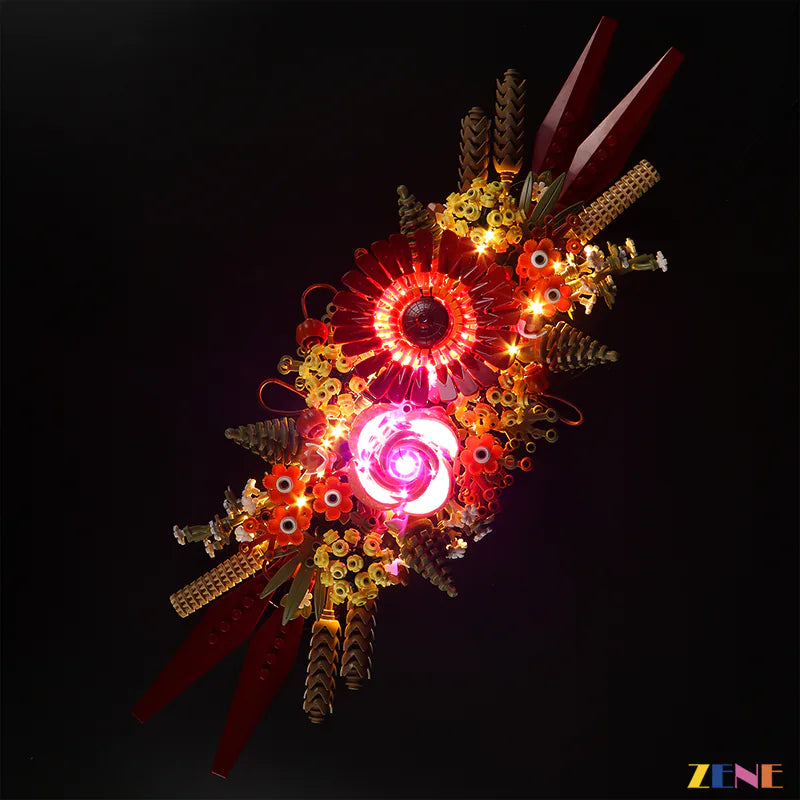 A DIY project where someone arranges dried flowers in a vase or other container and uses LEGO bricks to build a structure around it. The exact design and appearance of a LEGO Dried Flower Centerpiece would depend on the creator's personal preferences and creativity. ZENE light it and let your creativity shine. Especially the light shines from the heart of the flower, making the color of the flower bright and colorful.