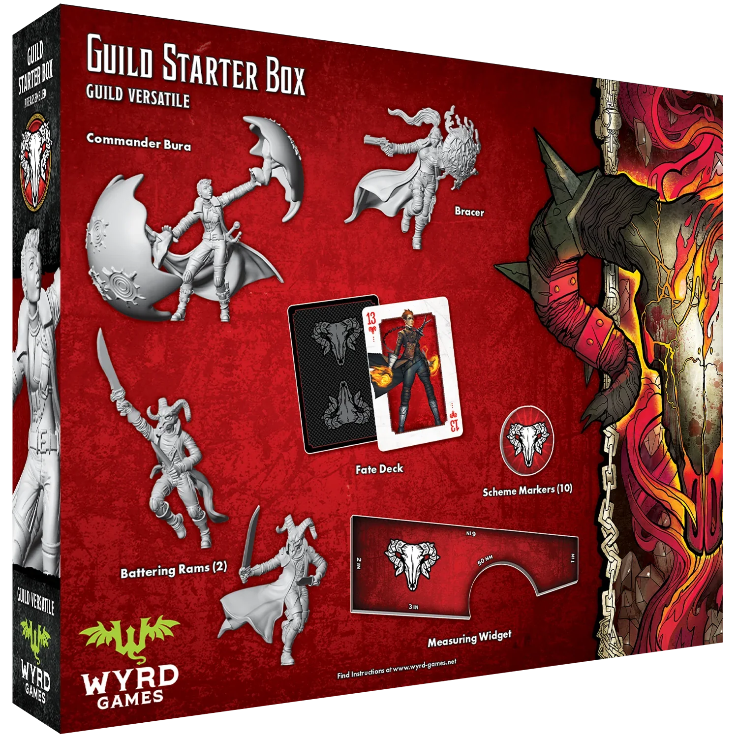 The Guild Starter Box is the perfect jumping-off point for a player ready to make the leap into Malifaux Third Edition. Containing everything needed to get started as soon as possible, this box contains four pre-assembled models, a Fate Deck, General Upgrades, Markers, and a Measuring Widget.