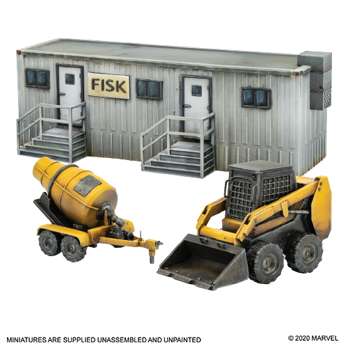 Expands the Marvel: Crisis Protocol battlefield with the Hell’s Kitchen Terrain Pack. This terrain pack features a host of highly detailed miniatures of construction site equipment and machinery— the very kind used to repair the neighborhood that has been home to some of the most devastating battles in the Marvel Universe.