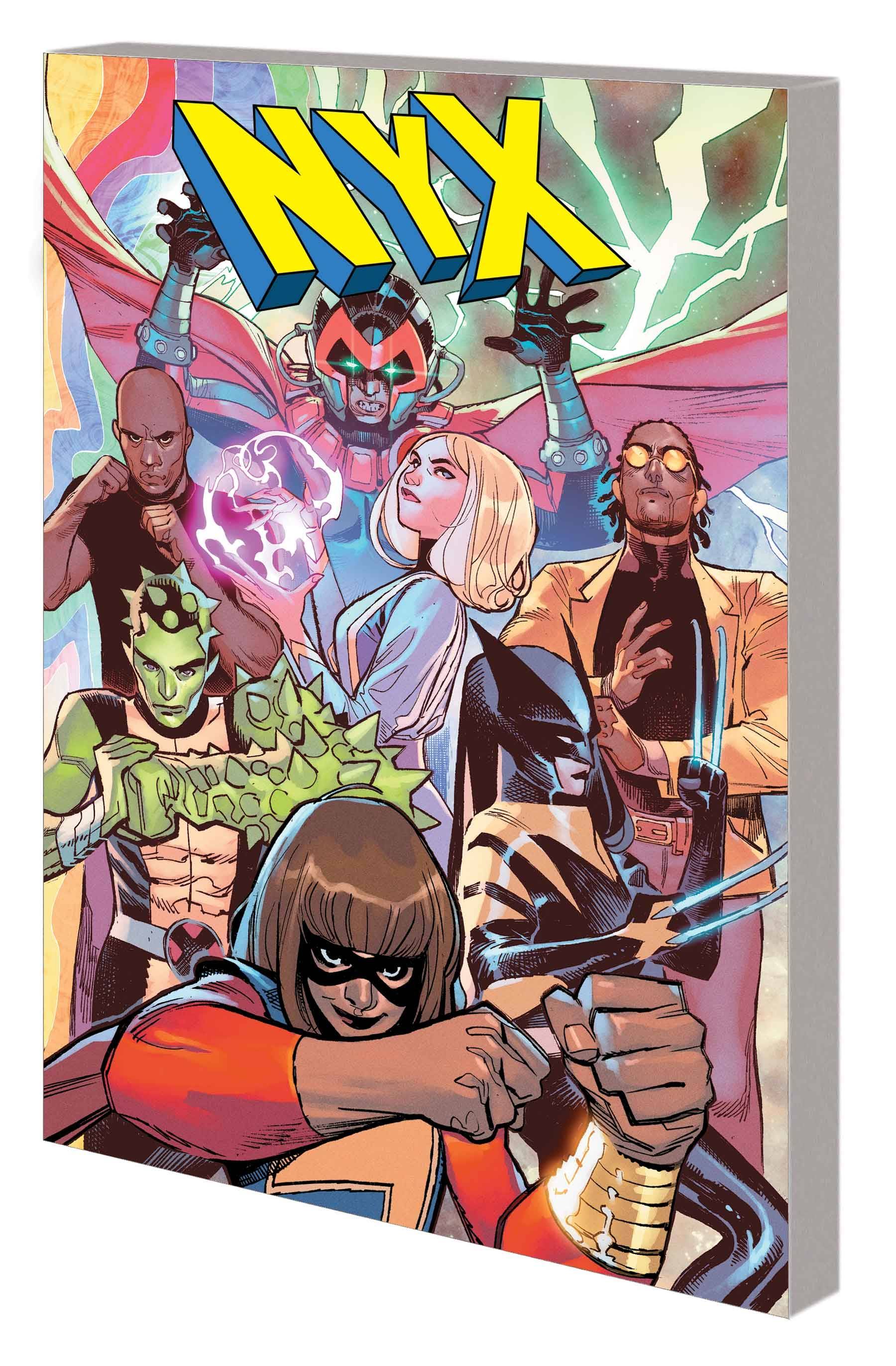Congratulations, Kamala Khan - you got tickets to Dazzler! We hope you survive the experience! Because Mojo also has his sights set on the hottest show in town, and the ensuing battle might just bring the house down. Then Synch revives a Krakoan tradition when he challenges Prodigy to battle to the death in the Circle Perilous! And Wolverine is about to come face-to-face with her old friend Hellion - now calling himself the Krakoan, the proud new face of mutant terrorism. As they confront each other, their intense past and what they've become, one thing is for sure: They're not kids anymore. Plus: when Charles Xavier goes on the run, his first stop is New York - but what will that mean for this generation of Children of the Atom? And when Mojo returns as a bigger threat than ever (in all ways!), everything the NYX community has built is at risk of crumbling to pieces!