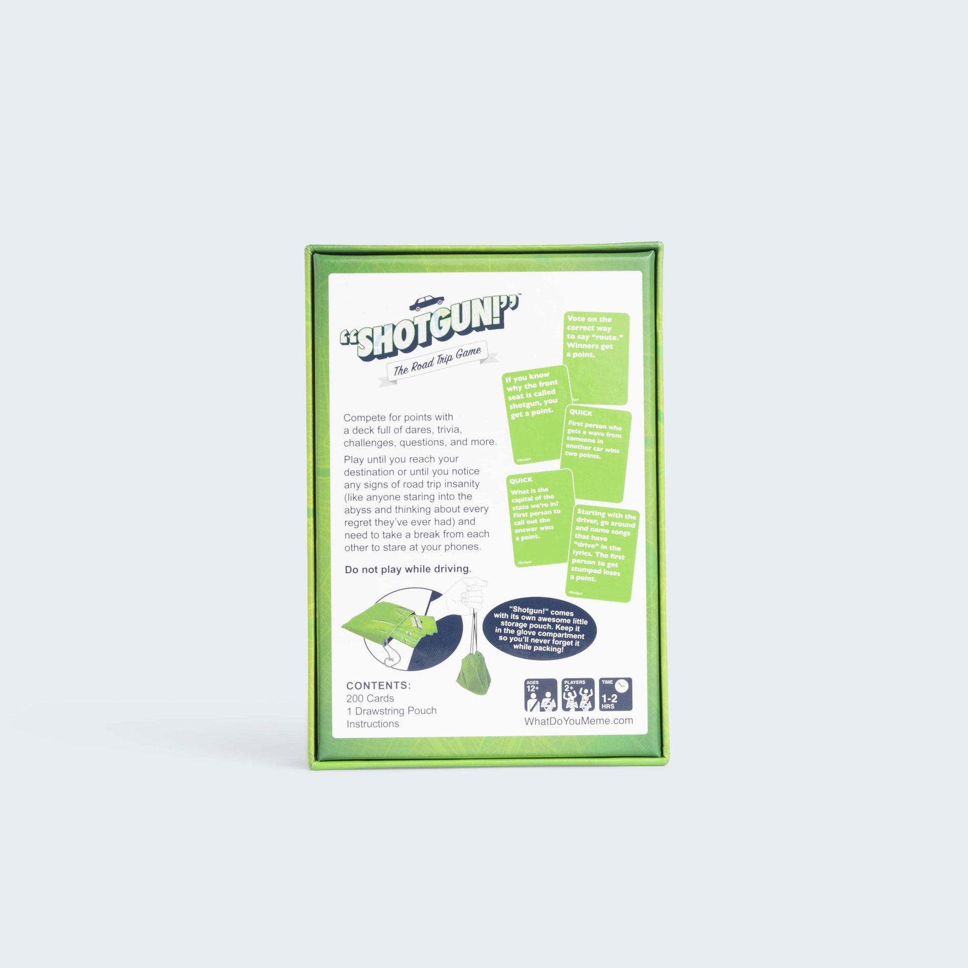 Leave road trip boredom in the rearview. Hit the highway with Shotgun, our family card game that allows you to compete with your car mates by playing dares, trivia, challenges, questions, and more. With over 200 cards, you'll be entertained the whole trip — and no two games are ever the same.
