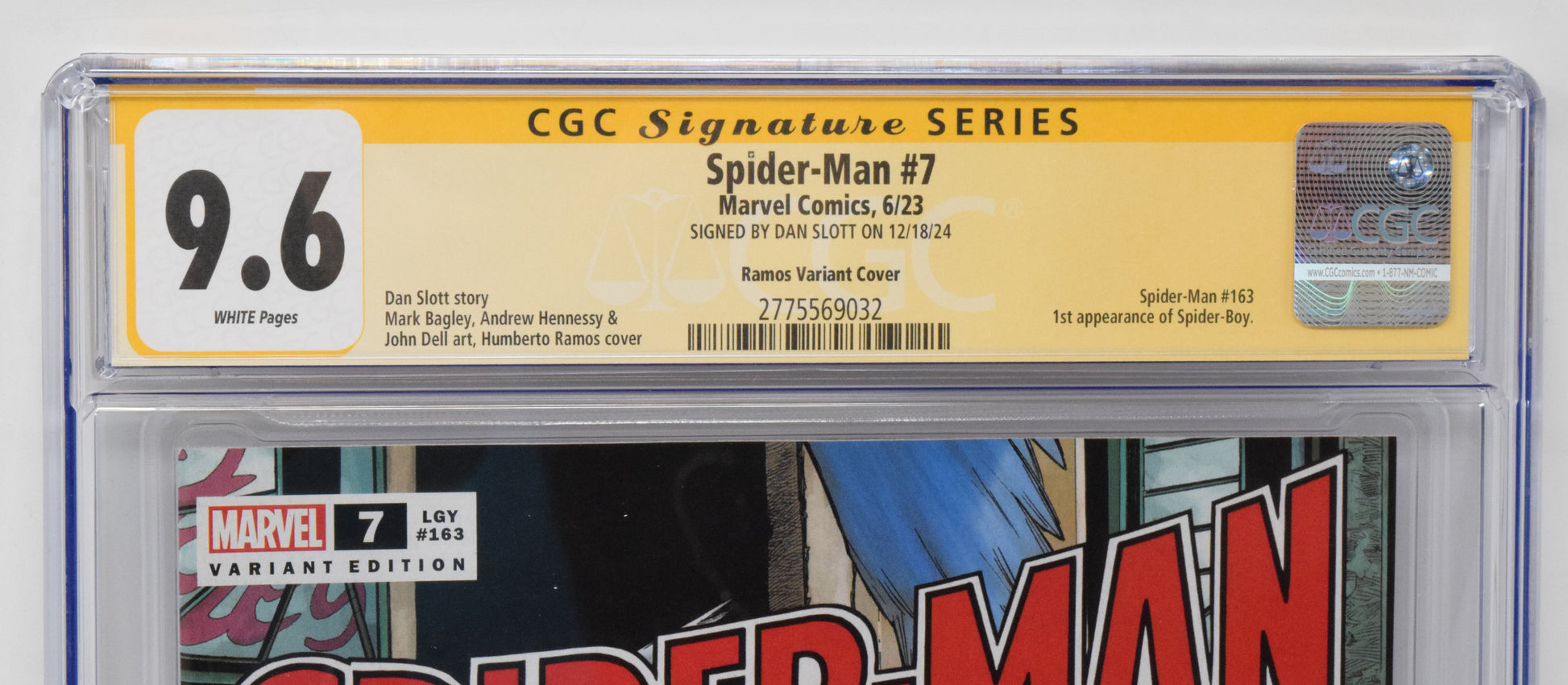 Spider-Man #7 D Marvel 2023 NM Humberto Ramos 1st Spider-Boy CGC SS 9.6 SIGNED Dan Slott