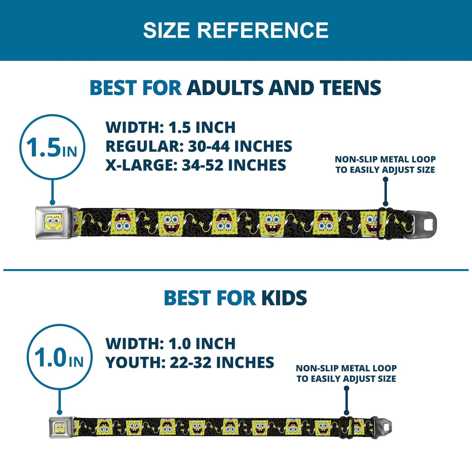 Buckle-Down's iconic Seatbelt Belt is a cool, smart, and exciting blend of fashion and function. Always a conversation starter, our Seatbelt Belt adjusts to perfectly fit your waist while showcasing your unique sense of style. Our Seatbelt Belts are made with authentic automotive style seatbelt buckles making them easy to open and close at the push of a button. Our adult-size Seatbelt Belts are 1.5 inches wide and our kid-sized Seatbelt belts are 1.0 inch wide. This product is Handcrafted in USA by Buckle-Down Inc. and officially licensed by Nickelodeon.