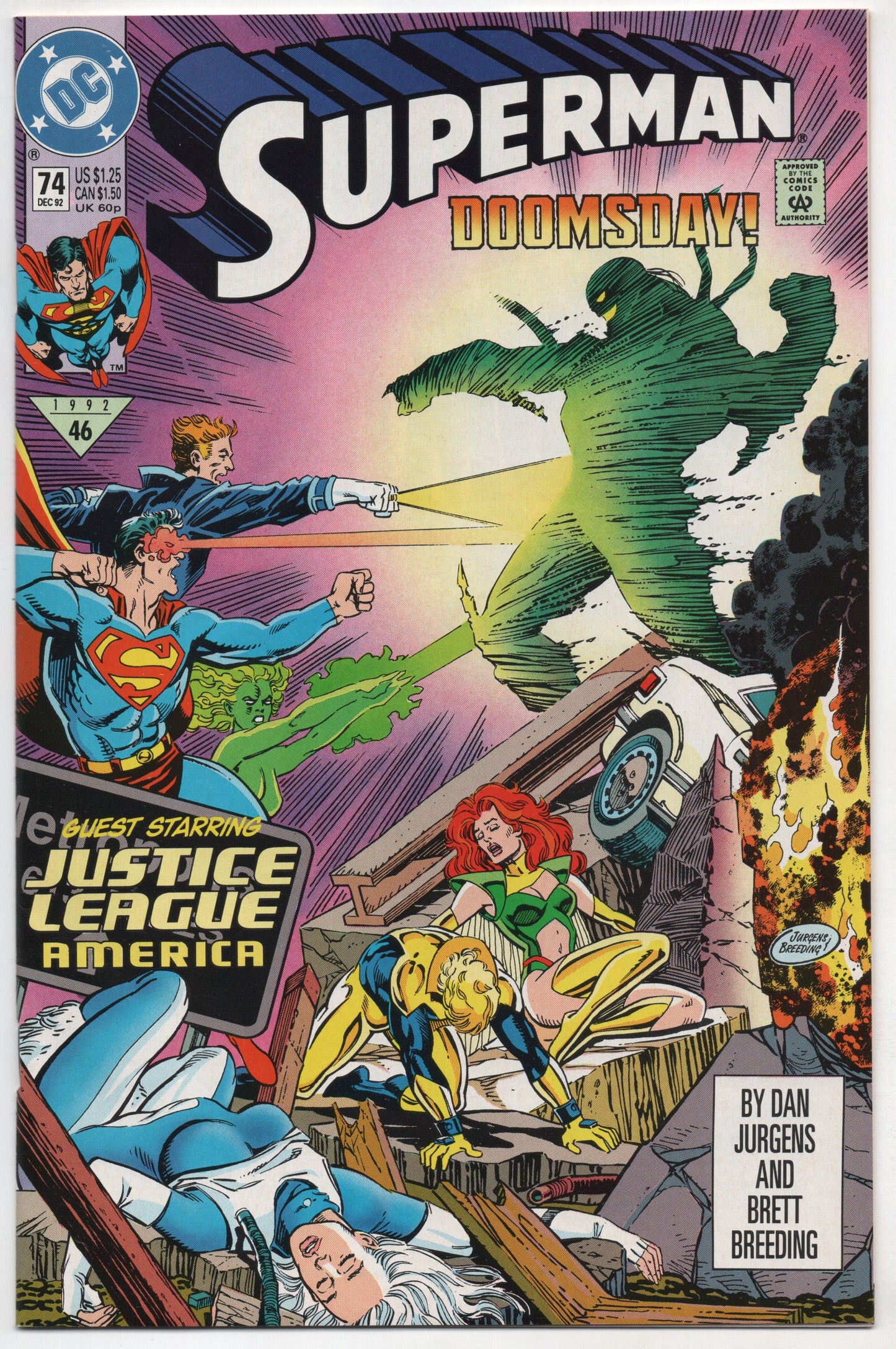 Superman 74 DC 1992 NM+ 9.6 Dan Jurgens Brett Breeding Doomsday Justice League