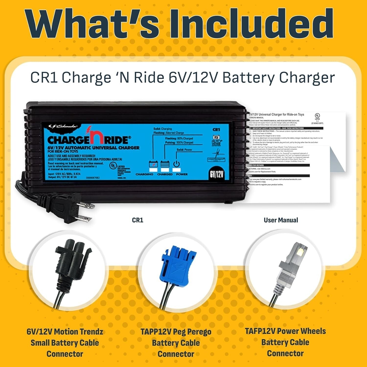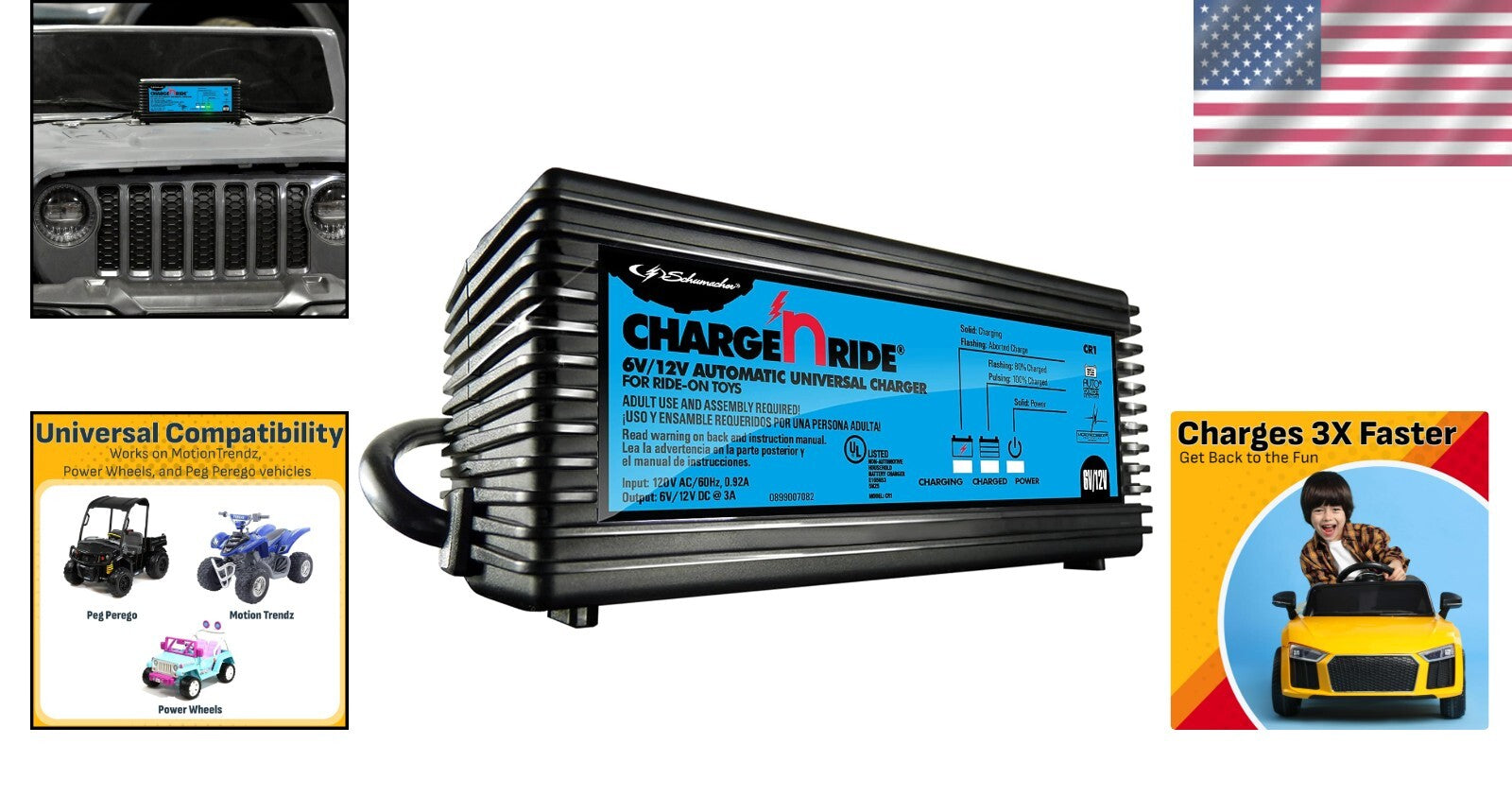 Universal Battery Maintainer for Ride-On Toys with Quick Connect and LED Status Indicator